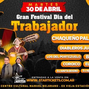 Festival Día del Trabajador: llega El Chaqueño Palavecino y grandes artistas para celebrar