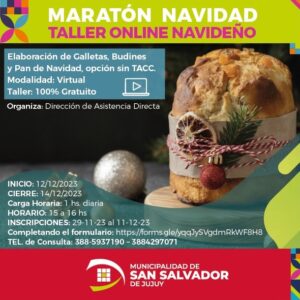La Municipalidad de San Salvador de Jujuy dictará un taller online totalmente gratuito destinado al público en general, para la elaboración de galletas, budines y pan de navidad, opción sin TACC. Las inscripciones…