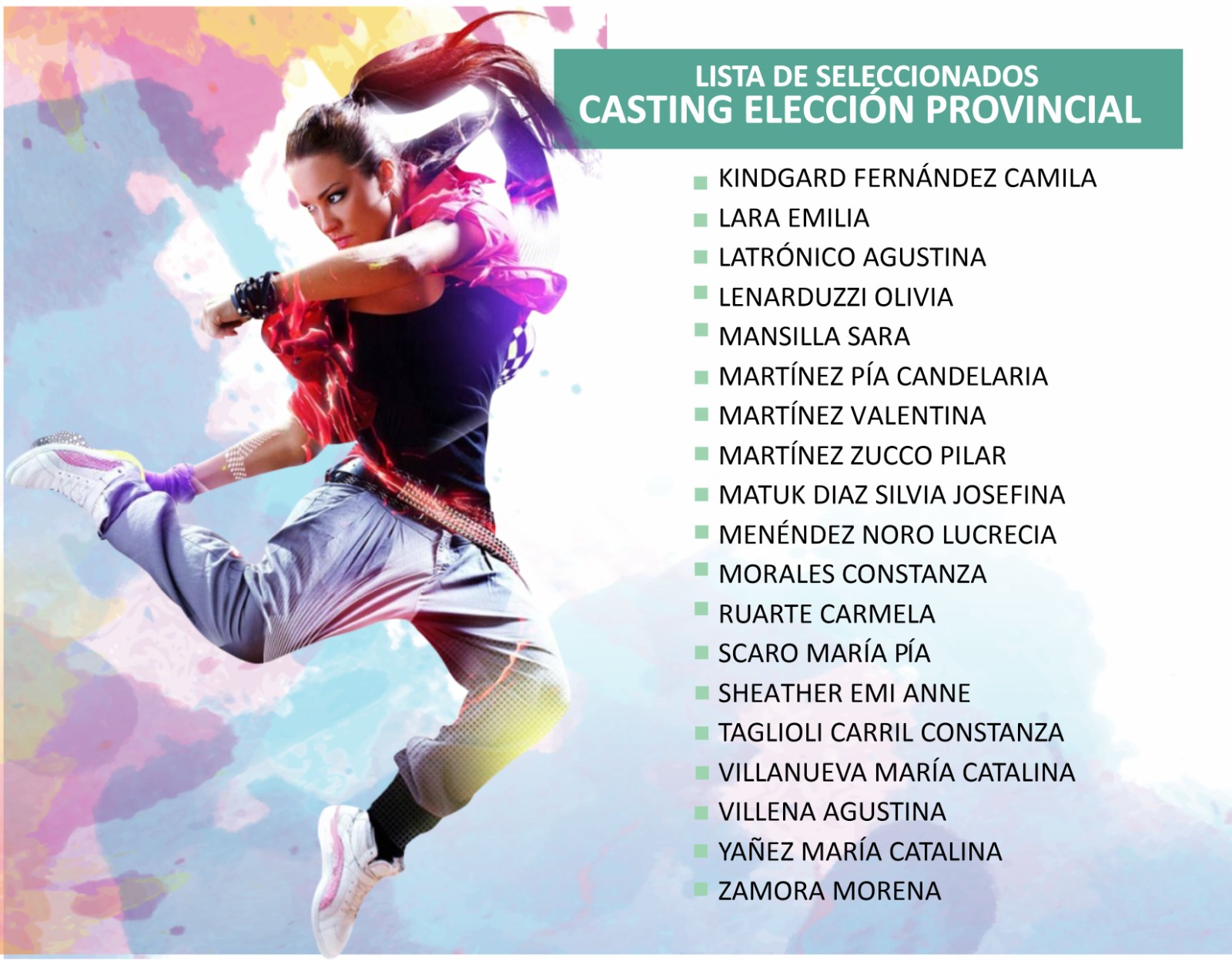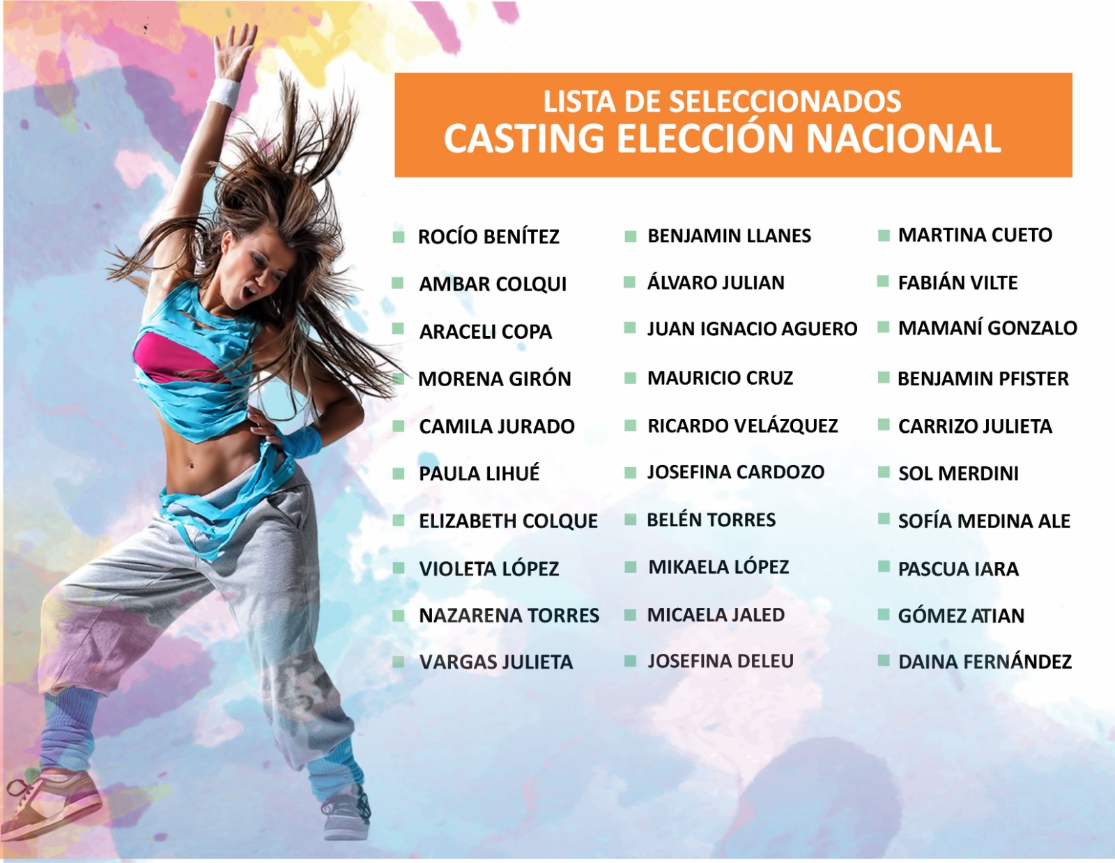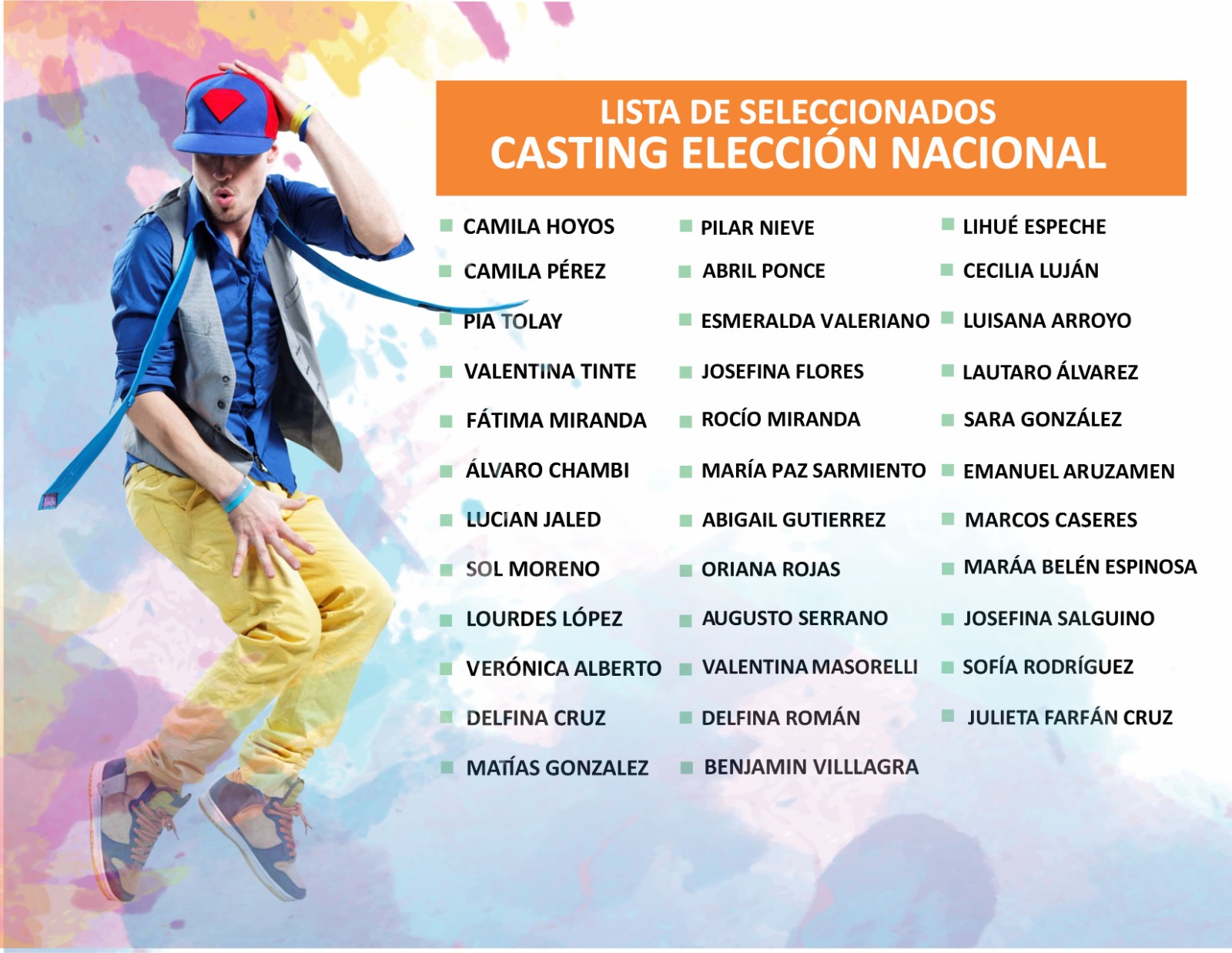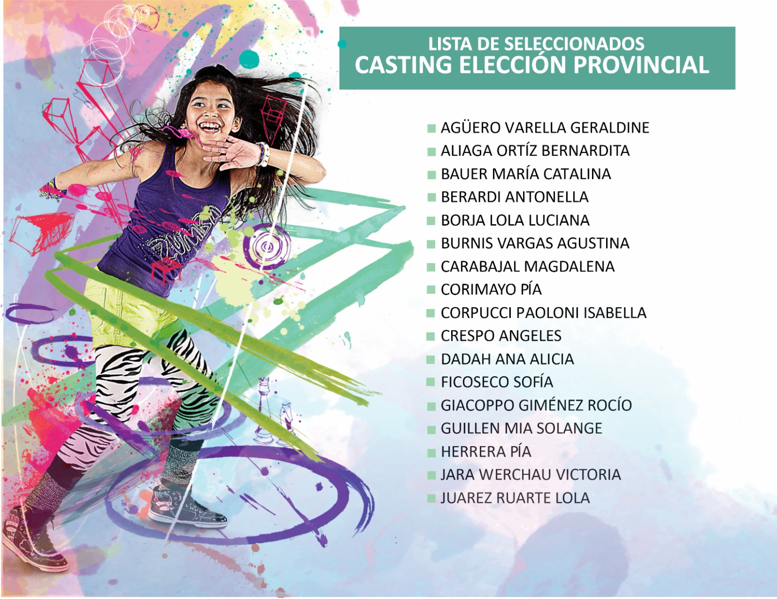 El Ente Autárquico Permanente de la Fiesta Nacional de los Estudiantes difundió el listado de los chicos y chicas que formaran parte de los espectáculos de las elecciones provincial y nacional.